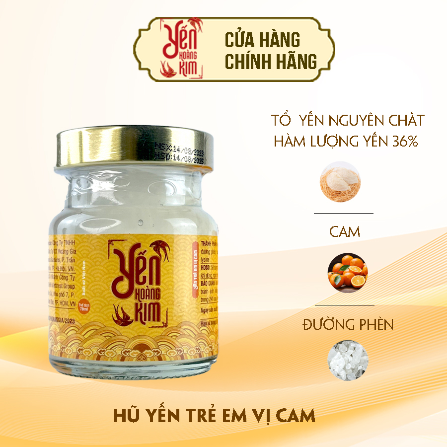 Yến Cho Trẻ Em Kids vị Cam Yến Hoàng Kim hũ 70ml 36% Yến Sào Khánh Hòa nguyên chất giúp bé ăn ngon, ngủ ngon